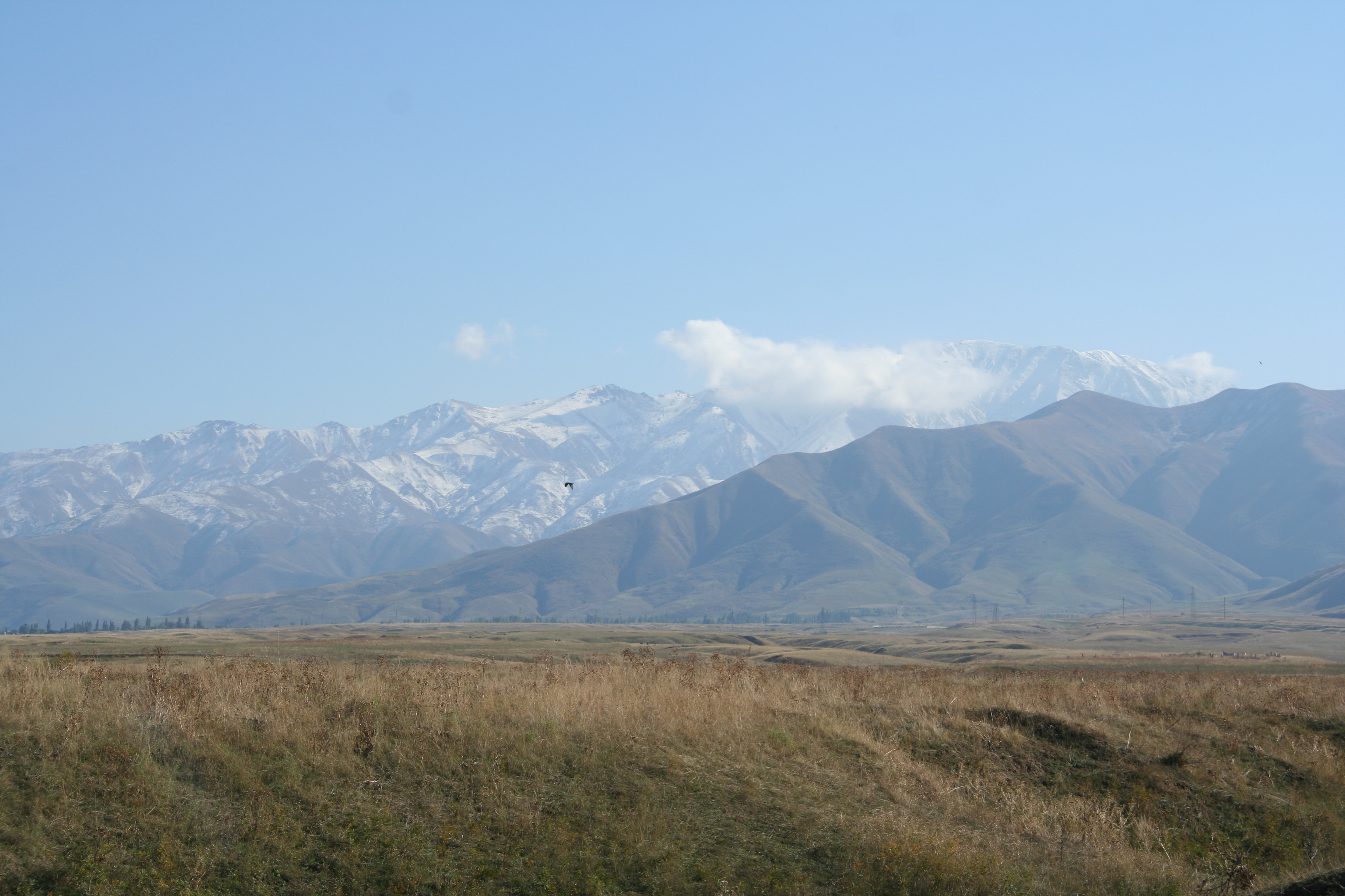 The road out of Bishkek was my first trip outside of the capital within Kyrgyzstan after my night-time journey from the airport into town. Our route out took us past Osh Bazaar, one of Bishkek’s largest, and Kyrgyzstan’s largest used car market, which is a phenomenon I hope to write about in a later blog. Along our route thousands of kilometres of flat Kazakh Steppe and West Siberian Plain crashed spectacularly into the snow-capped Toblerone blocks of the Alatau Mountains, the advance guard of the Himalayas, which rise 3500 metres within the space of 50 km. Mesmerized by the mountains, by the time I looked back at the road, the second- and third-hand Mercedes of Bishkek had thinned out and we were