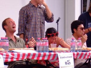 As soon as I arrived, I began stuffing my face with good old fashioned American food – a hamburger, cake, some soda – and then I found out about the hot dog eating contest! The Kiva fellows made a (strong?) showing, with two [losing] contestants. I’ve always figured that my never-ending appetite would come in handy in an eating contest, but until now I never knew that everything tastes gross in the middle of an eating contest. I guess it didn’t exactly help that I was full of food going in, and couldn’t stop cracking up during the competition.