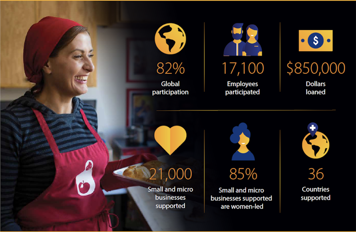 Through their partnership with Kiva, Visa and Visa Foundation engaged over 82% of employees across 120 global offices in 2021… and won a Halo award.