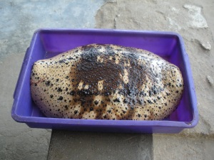 Ann explained that her husband dives at night to catch the sea cucumbers. There are places in the Philippines where sea cucumbers are protected, she added, but there are currently no restrictions on harvesting sea cucumbers in Camiguin. After her husband returns with the catch, she’ll leave the sea cucumbers in small basins until they spew out any leftover sand and innards, then boil and dry them. Every two weeks Ann and her husband sells the dried sea cucumbers to a Filipino agent for $1,500 pesos/kilogram. She said that the agent will then export the dried product to Korea.