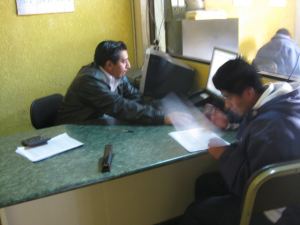 End of the month checks: Armando, branch manager, & Jose Santiago, loan officer, review list of delinquent borrowers before field visit.